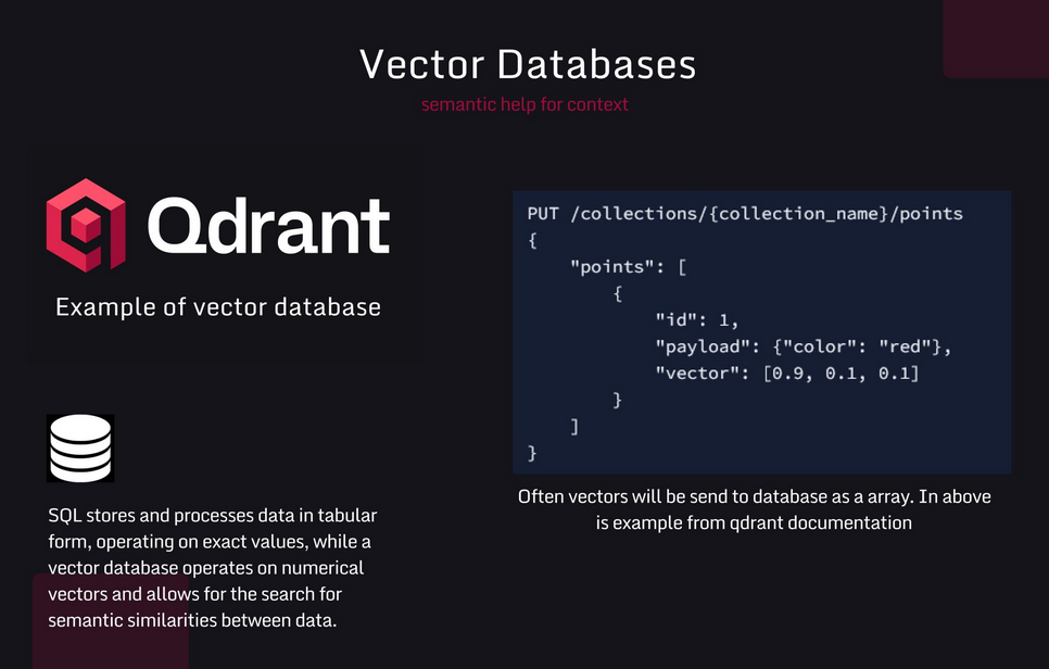 W typowym projekcie z wykorzystaniem modeli językowych, np. chatbota firmowego, baza wektorowa pełni rolę „silnika kontekstowego”.